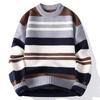 მამაკაცის შემოდგომის გარე ტანსაცმელი ზოლიანი სვიტერი თინეიჯერების მრგვალი კისრის ნაქსოვი ტოპი