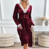 Temperament and Elegance Outer Wear Autumn and Winter Women's Long-sleeved Red V-neck Velvet Dresses