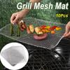 10PCS Aluminum Non-stick Outdoor Barbecue Net Disposable Grill Net BBQ Baking Mat Oven Mat High Temperature Resistance Grill Net