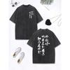 Japanese Calligraphy Printing Washed T-Shirt Women Cotton Oversize T Shirts Casual O-Neck Distressed Tops Womans Clothes