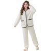 DAYCLOSET Long Sleeve Loungewear Feather Knit Pajamas with Ribbed Thick Belly roomwear207 Beige x Women's Set, Knit, Warmer, Fall/Winter, (JP,