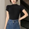Сәнді Slim Ins Жазғы Әйелдер футболкалары Қысқа жеңді пуловер жартылай жоғары мойын