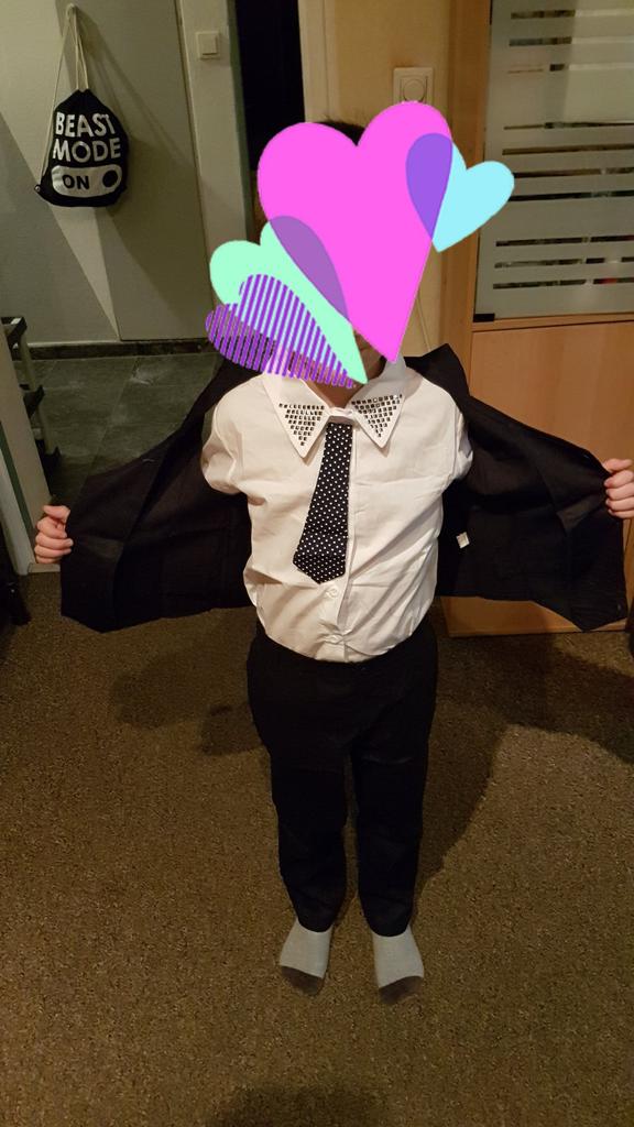 Kostiumas puikiai atrodo. Mano anūkui gruodžio pabaigoje bus 6 metai. Jo ūgis 125 cm