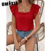 GMXIA Moteriškos mados laisvalaikio vasaros vienspalvės spaudos palaidinės ir marškiniai be rankovių kvadratine apykakle