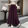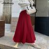 Korejas modes rudens ziemas sieviešu samta svārki ar augstu jostasvietu, ziedu apdruku, melni brūni midi svārki, vintage eleganti sievišķīgi volānu svārki
