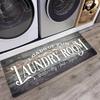 Vi introduserer vår gulvmatte for vaskerom! Denne matten er designet for å holde gulvene dine tørre og rene, noe som gjør den perfekt for områder med mye trafikk som vaskerommet. Med sine vann- og flekkbestandige egenskaper kan du stole på at denne matten vil opprettholde sin langvarige ytelse. Sikkerhet er en topp prioritet, og det er grunnen til at matten vår har en anti-skli gummibakside. Du kan stå på den med selvtillit, vel vitende om at den vil holde seg godt på plass og gi beskyttelse for din familie og kjæledyr. Ikke bare tilbyr denne matten funksjonalitet, men den gir også komfort. Den flokkede overflaten er myk å ta på, noe som gjør at føttene dine føles komfortable mens de står på den. Skumbaksiden med høy tetthet legger til en dempende effekt, og sikrer en komfortabel opplevelse hver gang. Rengjøring av denne matten er en lek! Bare sleng den i vaskemaskinen og la den gjøre jobben for deg. Den kan vaskes i maskin, slik at du enkelt kan fjerne støv, lo og flekker. Den slitesterke skumhaugen sikrer langvarig kvalitet, mens den trykte teksten holder seg levende og blekner.. Allsidig i design, passer denne vaskeromsmatten perfekt i ulike rom, og tilbyr både funksjonell og dekorativ for vaskerom, kjøkken, vaskerom, mudrooms, bad, entré og mer.