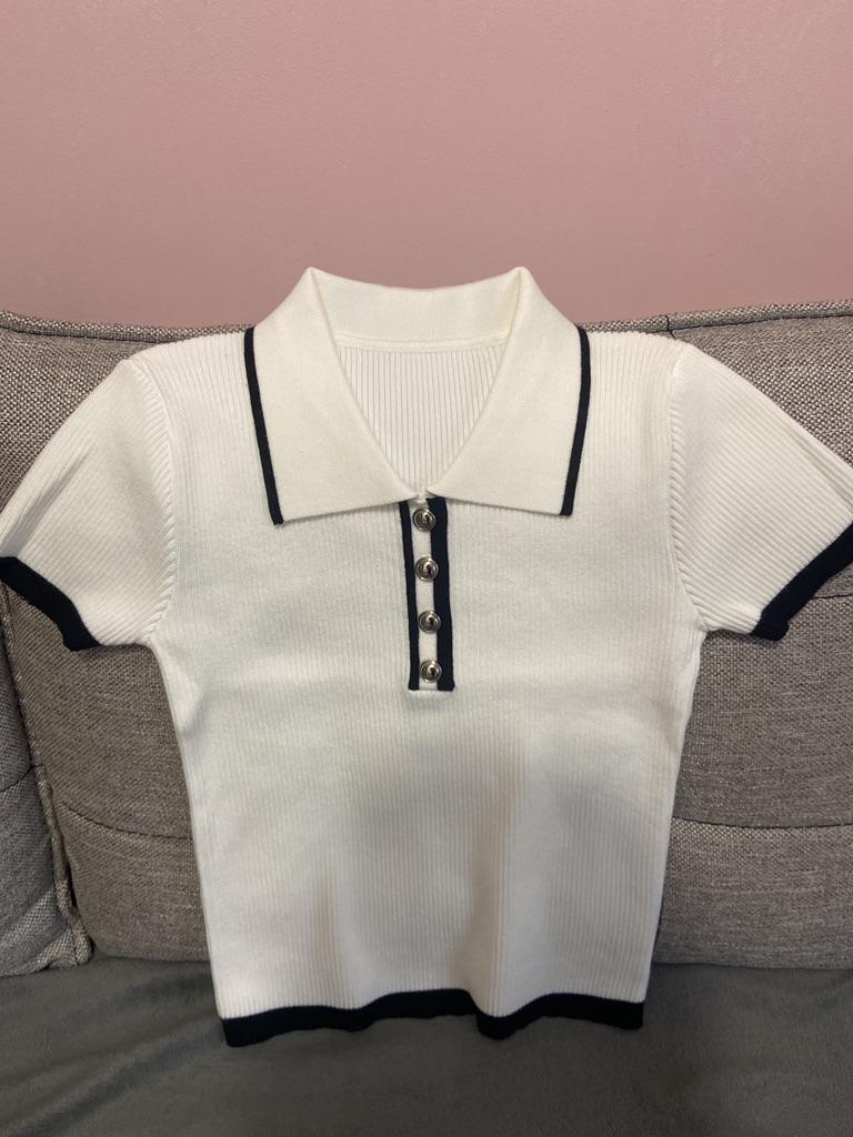 Slanke strikkede ribbeskjorter for kvinner mote polohals Elegant kortermet skjorte damer 2024 Summer Street Casual kontorstrikkede genseroverdeler