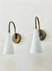 Mid Century White and Brass Wall Sconce – Modern Industrial Wall Light, Home Decor Lighting, Customizable Fixture