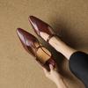 New Women's Flats Patchwork T Strap Shoes White Black Patchwork Leather Shoes Pointed Toe Low Heels Vintage Zapatos Mujer