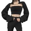 Summer Long Sleeve Tops Tee Short Fashion Retro Style Chain Solid Crop T-shirt Cross Collar Slim Cotton Pullover Tshirts