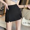 Women Mini Skirt High Waist Side Split Design Solid Color Short Skirt A-Line Design Skort Anti-exposure Work Skirt