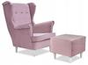 Fotel skandynawski Vika z podnóżkiem pufą profilowany Family Meble liliowy róż