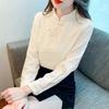 This chiffon pullover top features a charming plant floral jacquard pattern. The slim - fit design accentuates the figure, while the half - open collar and long regular sleeves add a touch of elegance. The traditional Chinese style pan - buttons as a trendy element bring a unique and cultural charm. Made of chiffon with polyester fiber, it has a light and flowing texture, suitable for creating an elegant and professional look for commuting.