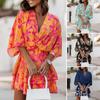 Sommerkjoler med flaggermusermer for kvinner V-hals Blomstertrykk Strandkjole for kvinner Casual Uregelmessig fald Korte kjoler