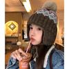 Fair Island wind wool hat women's autumn and winter retro versatile big head circumference warm knitted hat showing face small ear protection hat