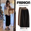 Women's High-Waist Korean Style Color Block Drawstring Fleece Lined Midi Skirt - Autumn/Winter A-Line Design