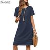 Ladies' Casual And Fashionable Solid Color Dress, Loose Short Sleeved Waist Cinched Dress