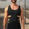 INCERUN Summer Men Round Neck Sleeveless Slim Waist Casual Tank Tops