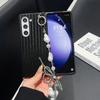 For Samsung Galaxy Z Fold6 5G Case Retro Rhombus PU+PC Phone Cover with Love Pendant and Strap