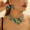 European & American Crystal Gemstone Floral Necklace & Earring Set - Colorful Evening & Bridal Accessories