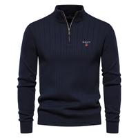 Gant Brodert stående krage bomull herregenser Uformell halv glidelås Ensfarget genser Høykvalitets strikket genser for menn