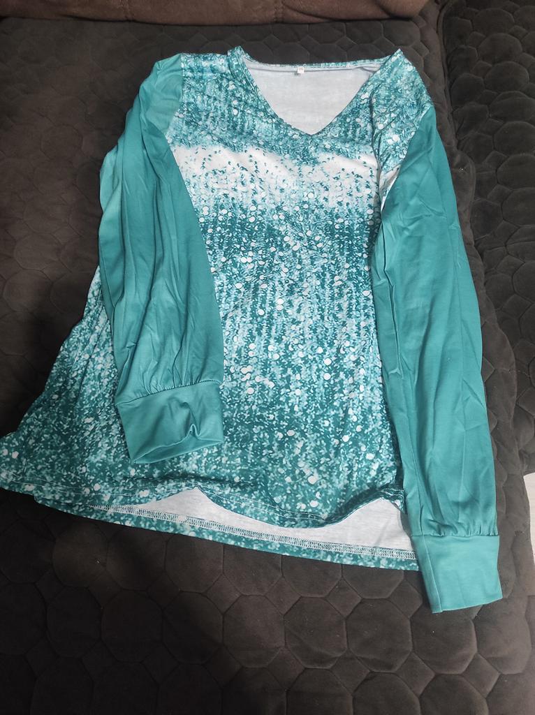 Ladies Spring Autumn Long Sleeve V Neck Loose Sequins Pullover T Shirt Top