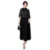 [Elegant Long Dress] This dress features a crew neck that flatters your collarbone. The chest is decorated with a lace floral pattern, and the sleeves are made of lace. The sheer material sways elegantly, revealing just the right amount of skin. It creates an elegant and refined impression.
