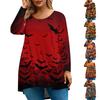 Women's Fashion Large Size Round Neck Long Sleeve Casual Halloween Print Loose Pullover Top