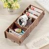Vintage Light Brown Solid Wood Desktop Storage Box with Drawer Desk Organizer Distinctive Independent Document Souvenir Display