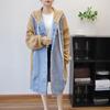Autumn and winter new splicing denim hooded knitted double-sided woolen cardigan women's loose versatile sweater jacket