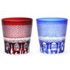 Mizukage Kiriko Pair of Glass Flowing Water Lattice Red Current Model J-kitchens Cups, 80xH90mm, 280cc, Pattern, & Blue, Bisho,