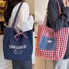 Casual Nylon Plaid Shoulder Bag With Pendant Dopamine Handbag Large Capacity Women Commuter Tote Bag Trendy Armpit Bags