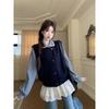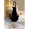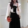 Kumikumi Graceful Flower Lace Tie Shirts Women Autumn Stacked Black Vest Dress