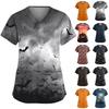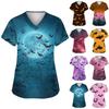 Women's Fashion V-neck Short-sleeved Work Uniform With Pockets, Halloween Print Top