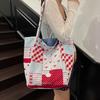 New oversized large-capacity red shoulder hand-held plaid canvas bag versatile student commuter leisure tote bag women
