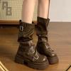 Retro brown thick-soled heightening Martin boots women's 2025 new spring and autumn Maillard stacking boots medium tube pants tube boots