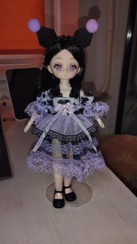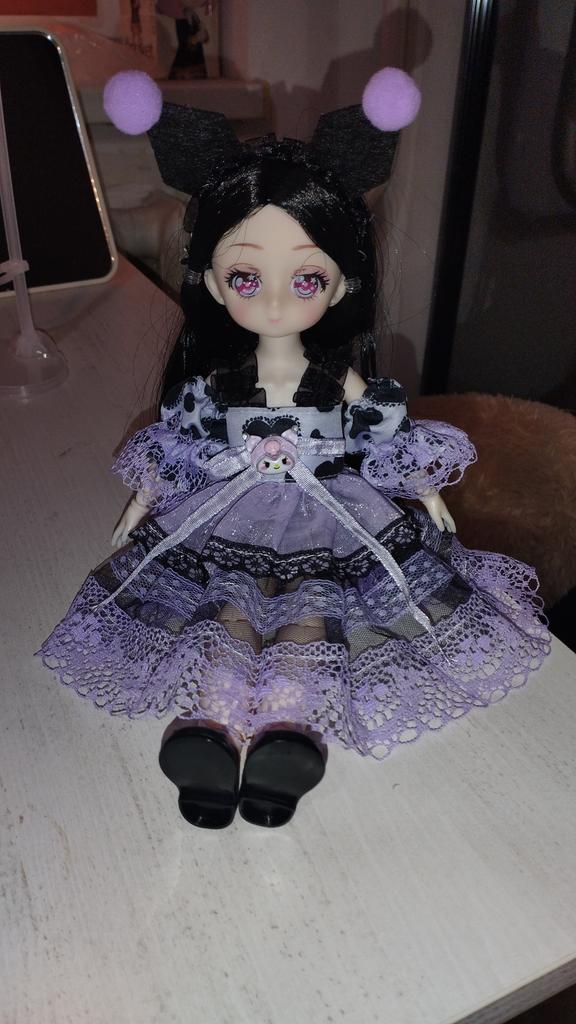 Трішки не схожа с фото сукнею, підшивала рукава, тому що резинка їх не тримала. Також немає кнопки-кулончика на ляльці, але про нього нічого і не писалося