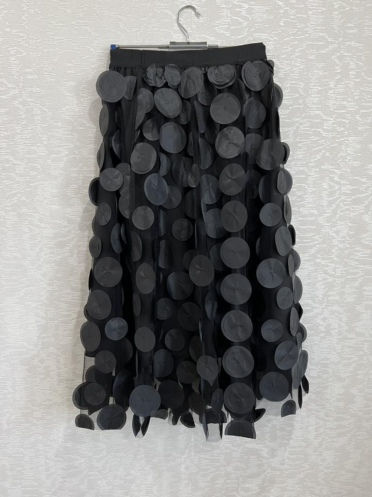 Qooth Fusta din plasă din tul cu buline cu design 3D pentru femei, cu talie elastică, fustă lungă cu linie A, QT2176
