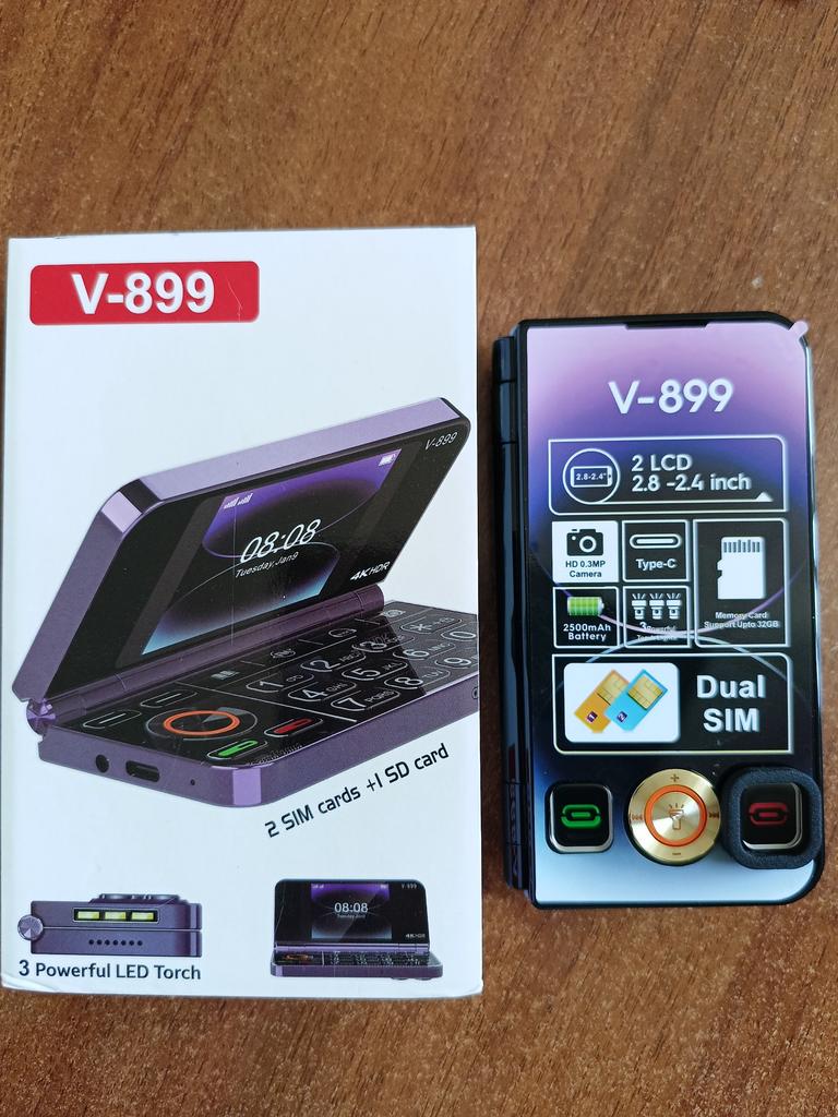 V-899 2G Side Folding Cellphone 2.8inch Dual Screen Display 32MB RAM 64MB ROM MTK6261A Dual SIM Card 3.0MP Camera Type-C FM Mp4 Torch Mobile Phone