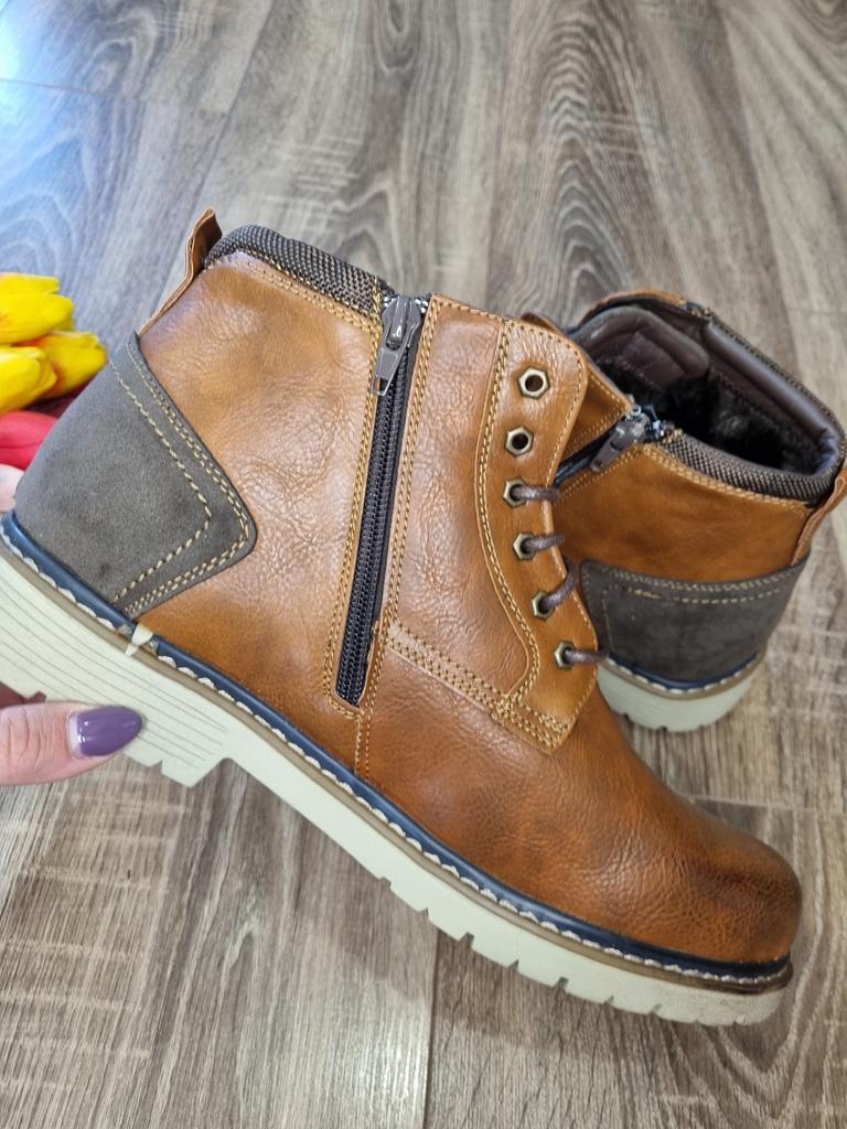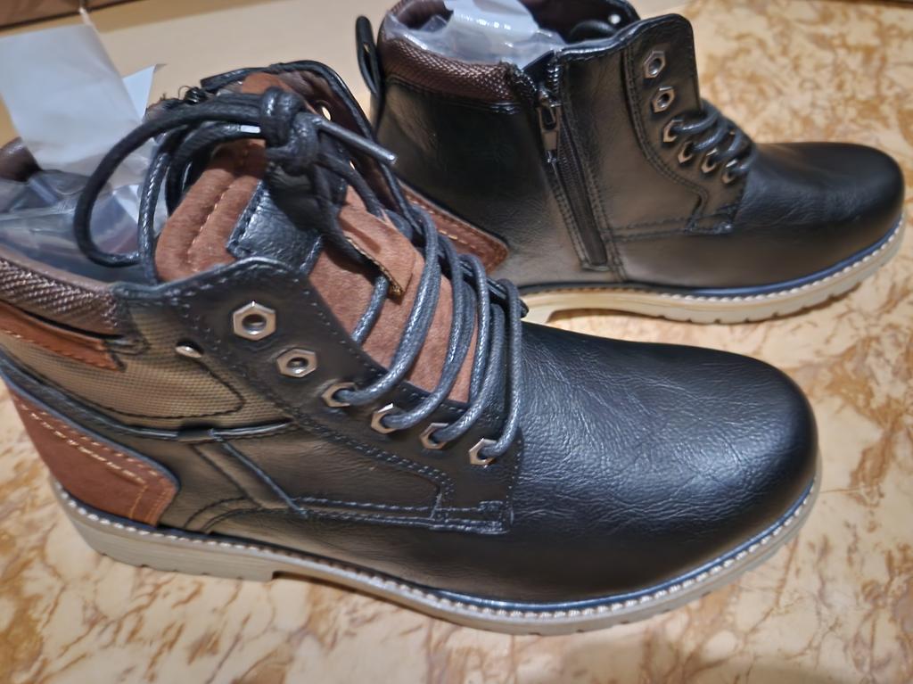 Зимові черевики ддя тата. Розмірна сітка вірна. На широку ногу не підійшли(. Забрав брат. Йому все подобається, але каже, що не дивлячись на все вони холодні. При -5 підошва промерзає. Дизайн дуже подобається. На нозі акуратні і виглядають не дешево.