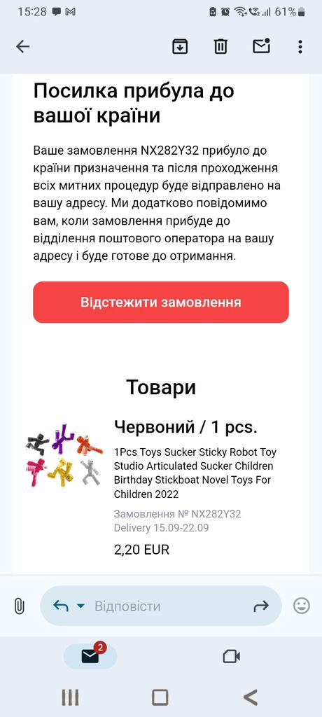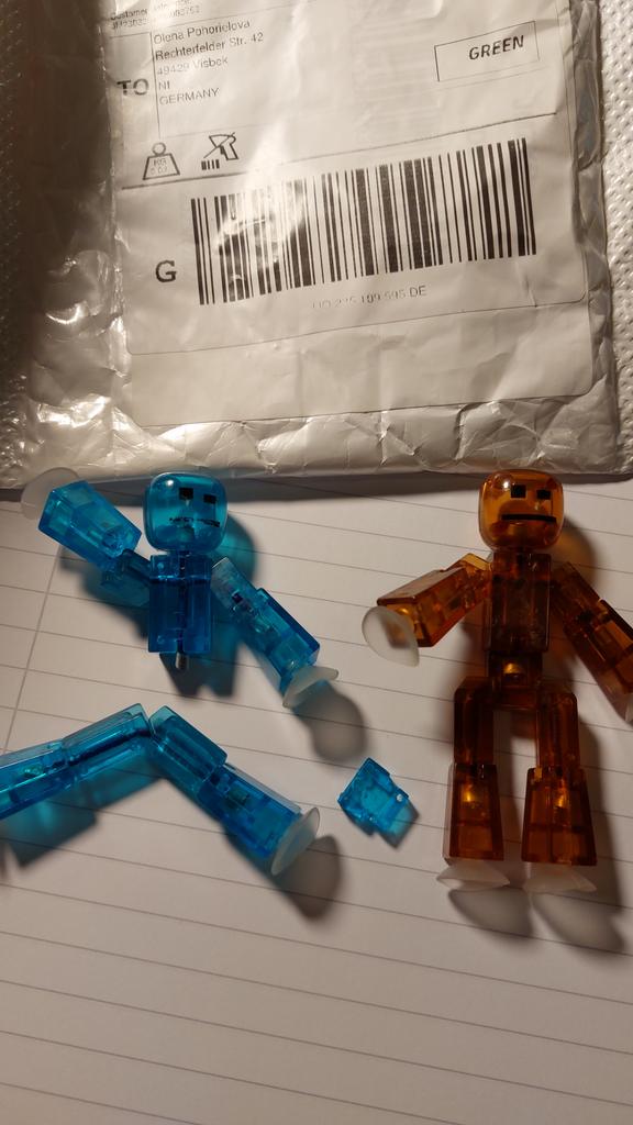В одному замовлені прийшло два чоловічки, мав бути : жовтий і синій. Прийшов один не того кольору, а другий поламаний.